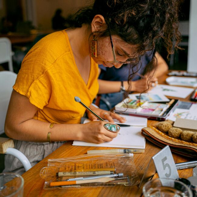 During Sketch Café, you work on your own project in good company. You decide whether to follow a prompt or try out a new technique. Everyone draws at their own level. We help one another, share tips and enjoy a pleasant atmosphere. You can draw whatever you like or try a challenge. Feel free to bring along interesting objects to sketch. Sketch Café is the ideal place to meet fellow drawing enthusiasts, discover what suits you and be creative together.