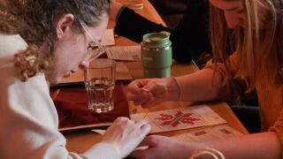 The workshop takes place in a relaxed and welcoming environment where participants can learn, practice, and connect through craft and culture.